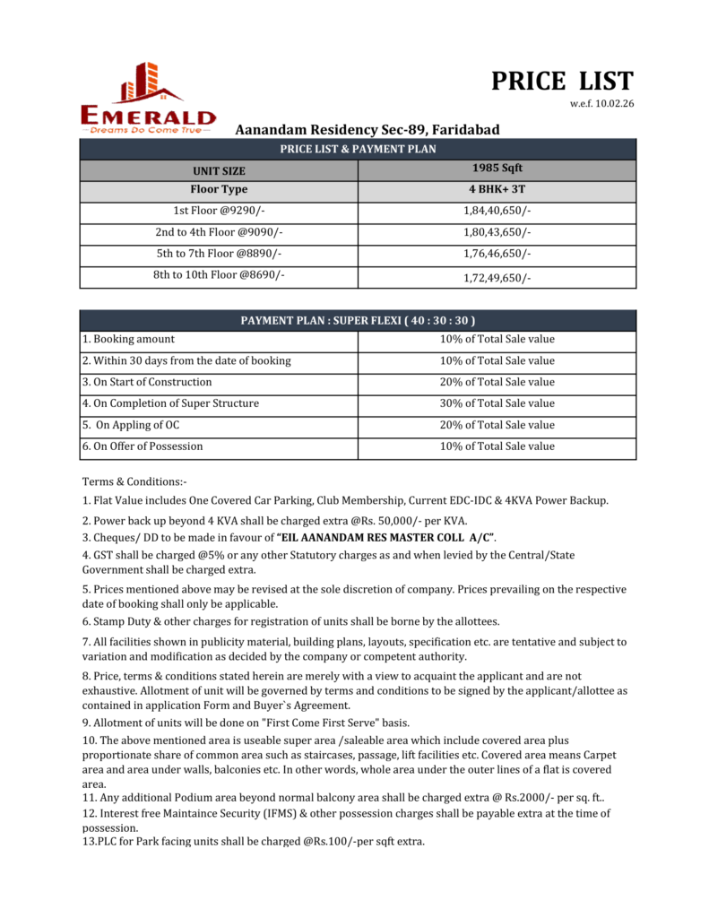 One of the major strengths of Emerald Anandam is its location in Sector 89, Faridabad. Being part of Faridabad’s growth corridor, this address offers good connectivity and access to key urban infrastructure.